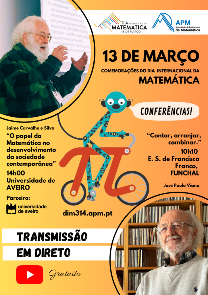 Jaime Carvalho e Silva - Professor do Departamento de Matemática da Faculdade de Ciências e Tecnologia da Universidade de Coimbra. Figura incontornável do ensino da Matemática em Portugal nas últimas décadas, faz conferências que cativam tanto alunos como professores.
